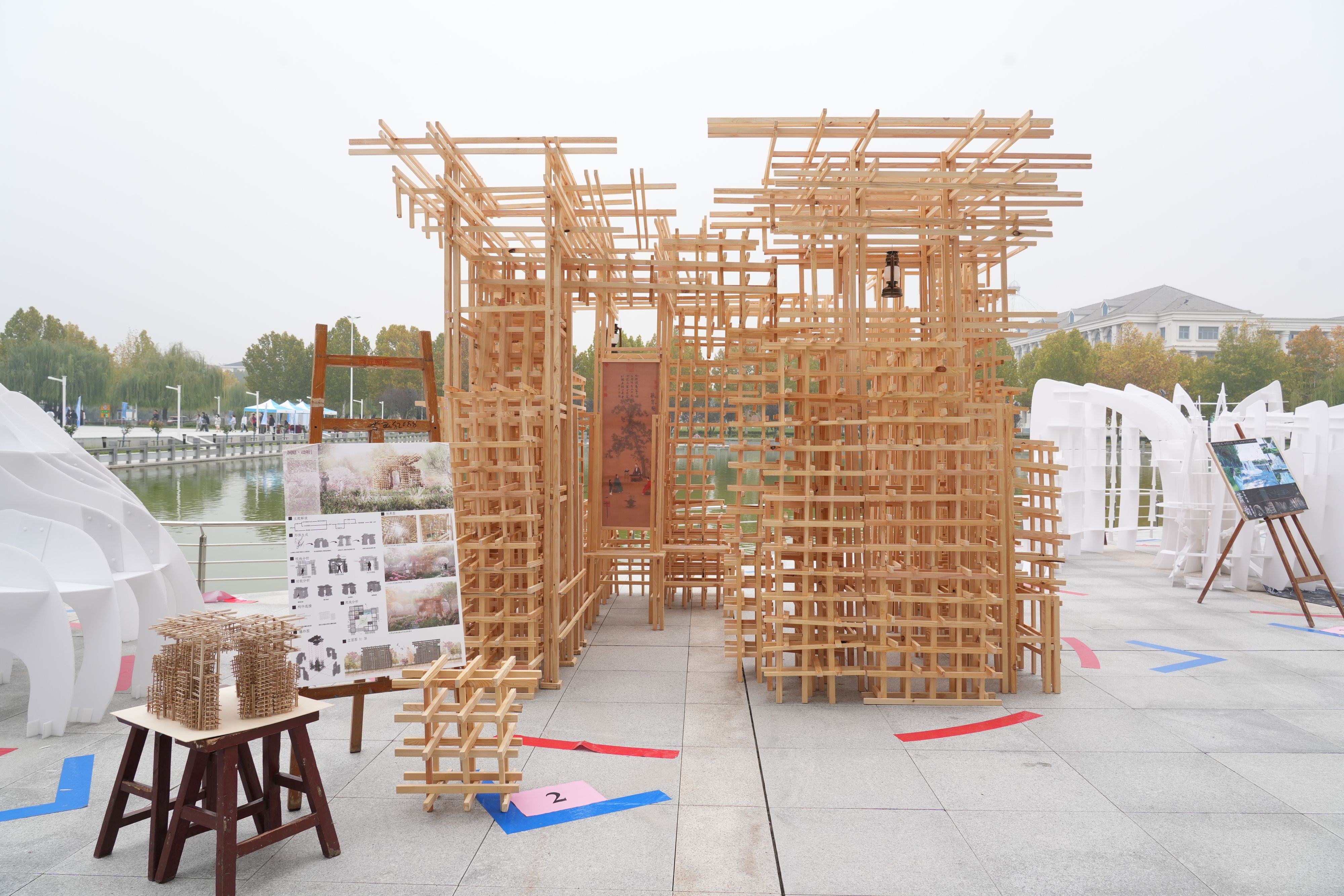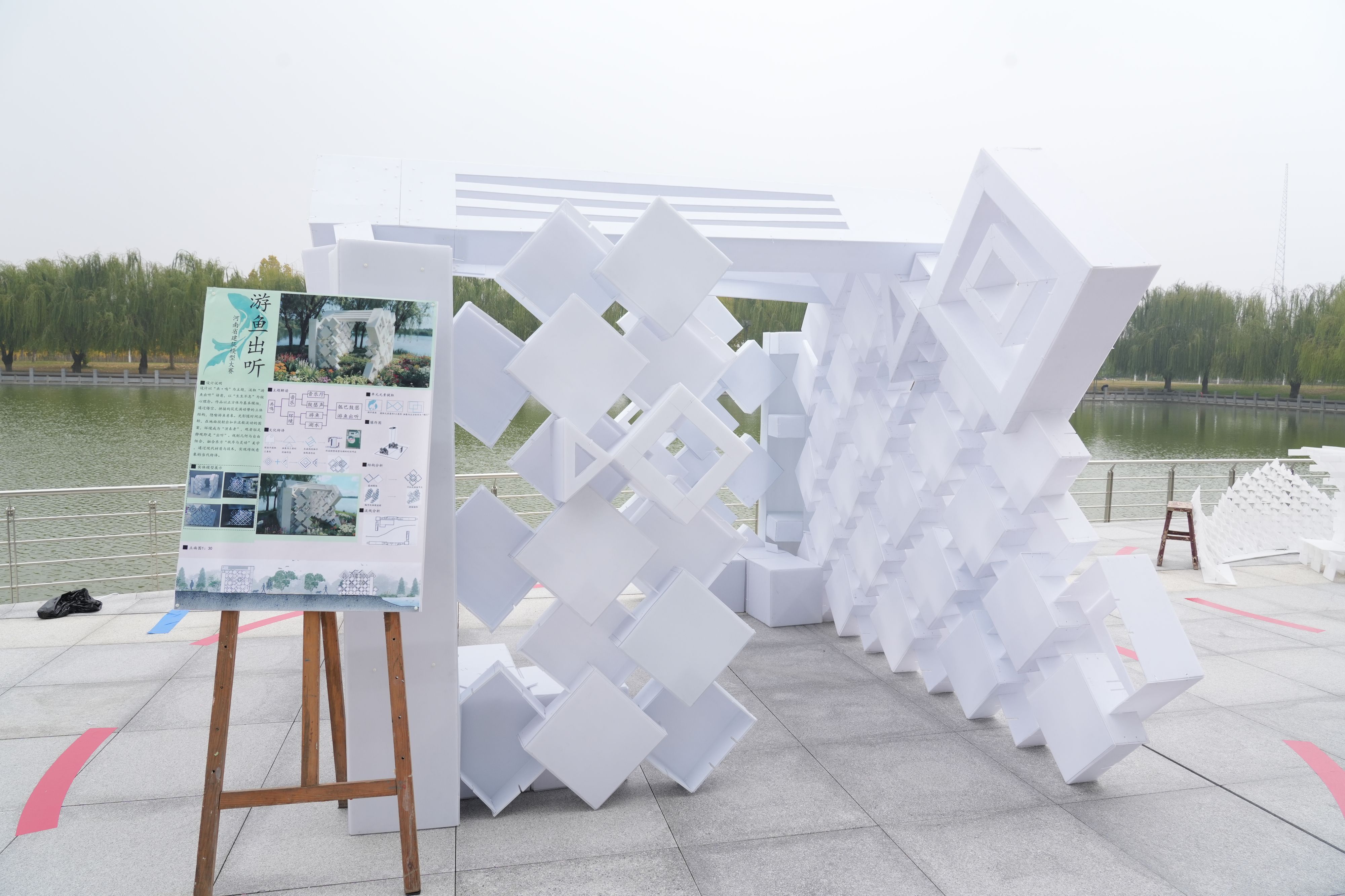 城乡规划(合作办学)专业“从容应队”团队作品《游鱼出听》获得二等奖。该模型以“游鱼出听”典故为灵感,融合音乐厅功能与冬泰湖环境,提取游鱼几何元素,采用卡扣式拆装结构实现模块化设计,成为“乐”与“湖”的连接载体。建筑学“第八维度”团队作品《洞庭・动听》获得三等奖。该模型针对快节奏城市生活,设计围合式洞穴空间供人放松,顶部开洞形成光影效果,将自然与人文之音融合,帮助人们重拾内心宁静。